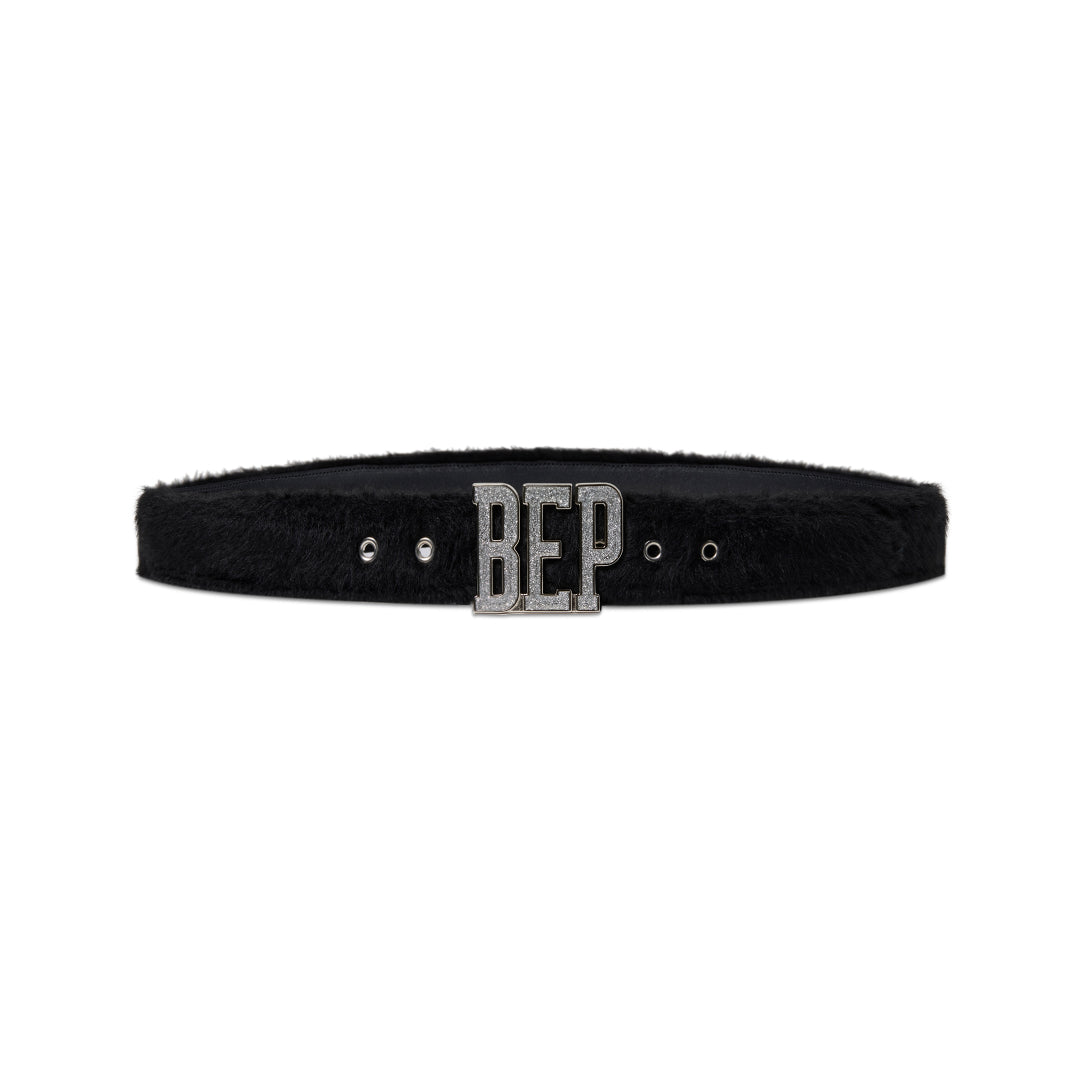 GLITTERED LETTERS FAUX FUR BELT (BLACK)