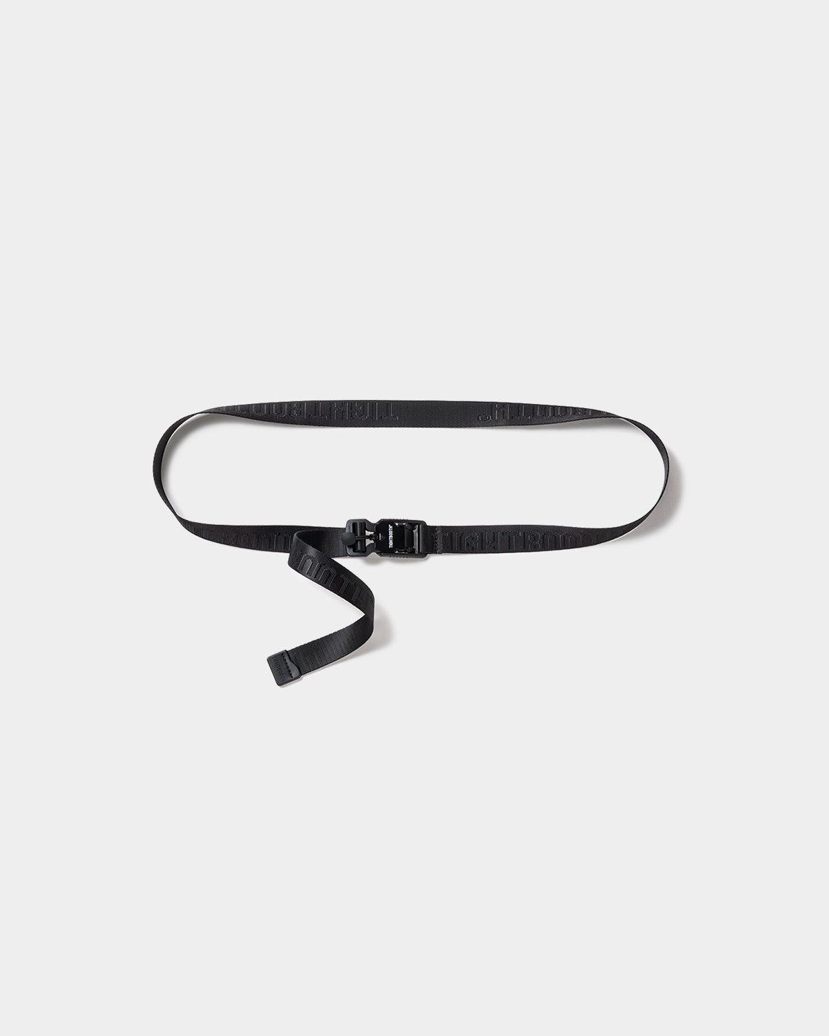 ・ロゴを型押ししたように凹凸表現したジャガードベルト。