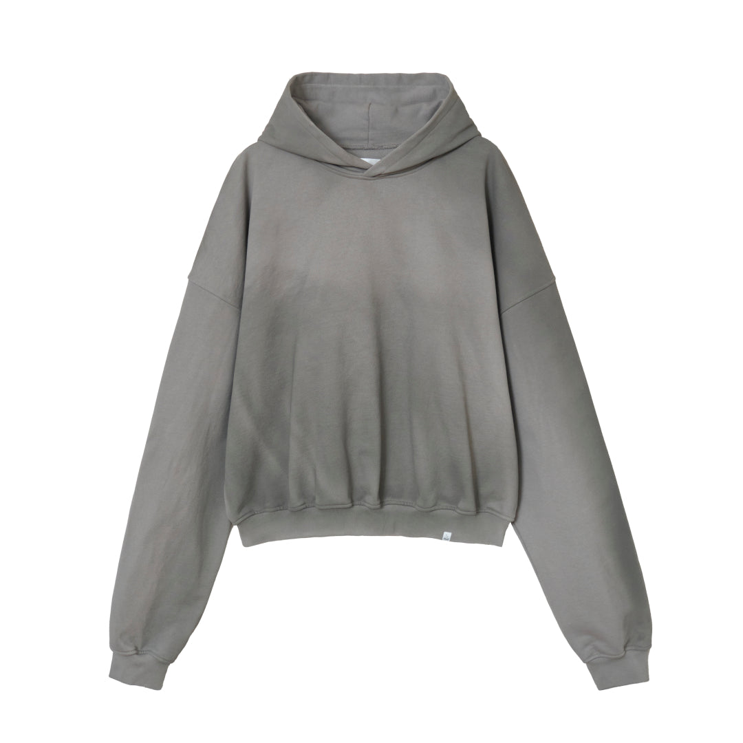 80-90年代を彷彿させるドロップショルダーにワイドな身幅のボックスシルエットのスウェットパーカー オリジナルで製作したぬめり感のある上質な裏毛を使用。