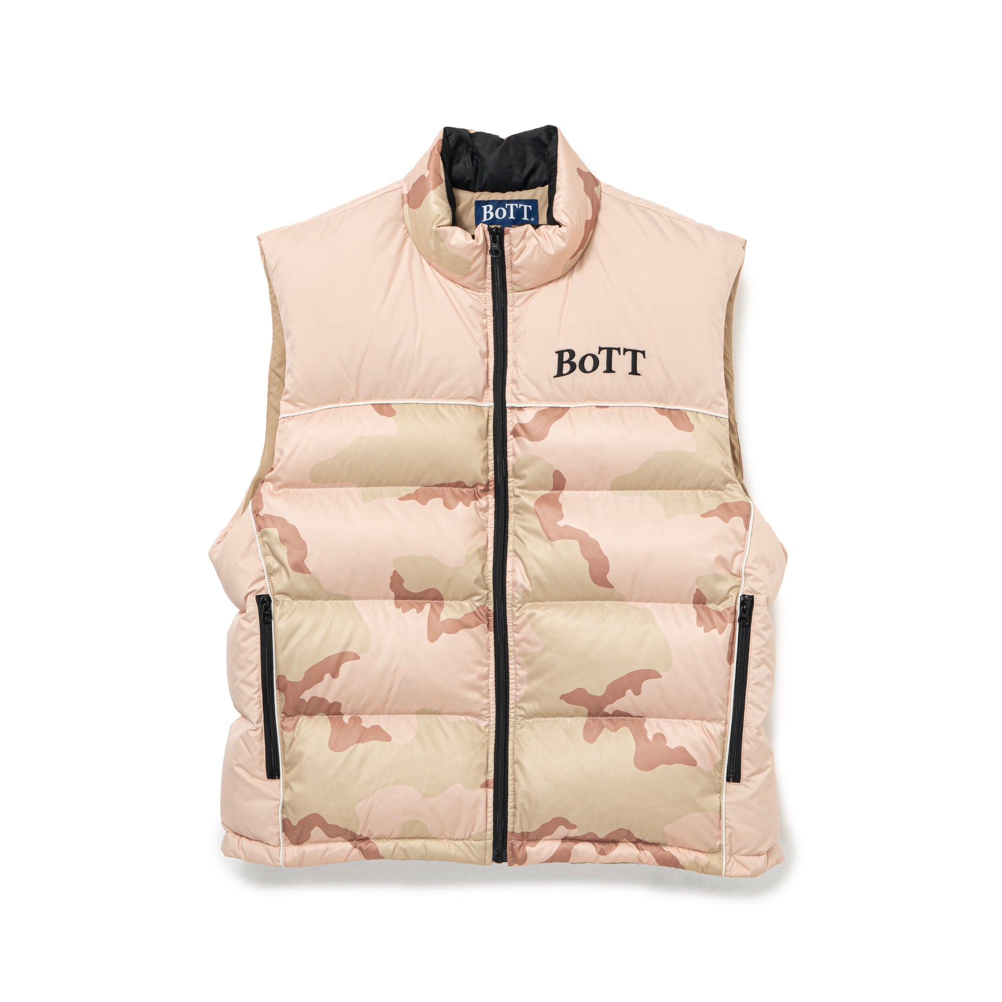 • Polyester water-repellent micro-ripstop down vest • Silet-processed lining for wind protection • Light weight Kawada Down. • 90% Down, 10% Feather. 750FP. • High density 400T down packs. • White reflective piping • Elastic drawcord at hem for adjustable fit • OG Logo embroidered on chest, B Logo embroidered at rear hem • Side pockets