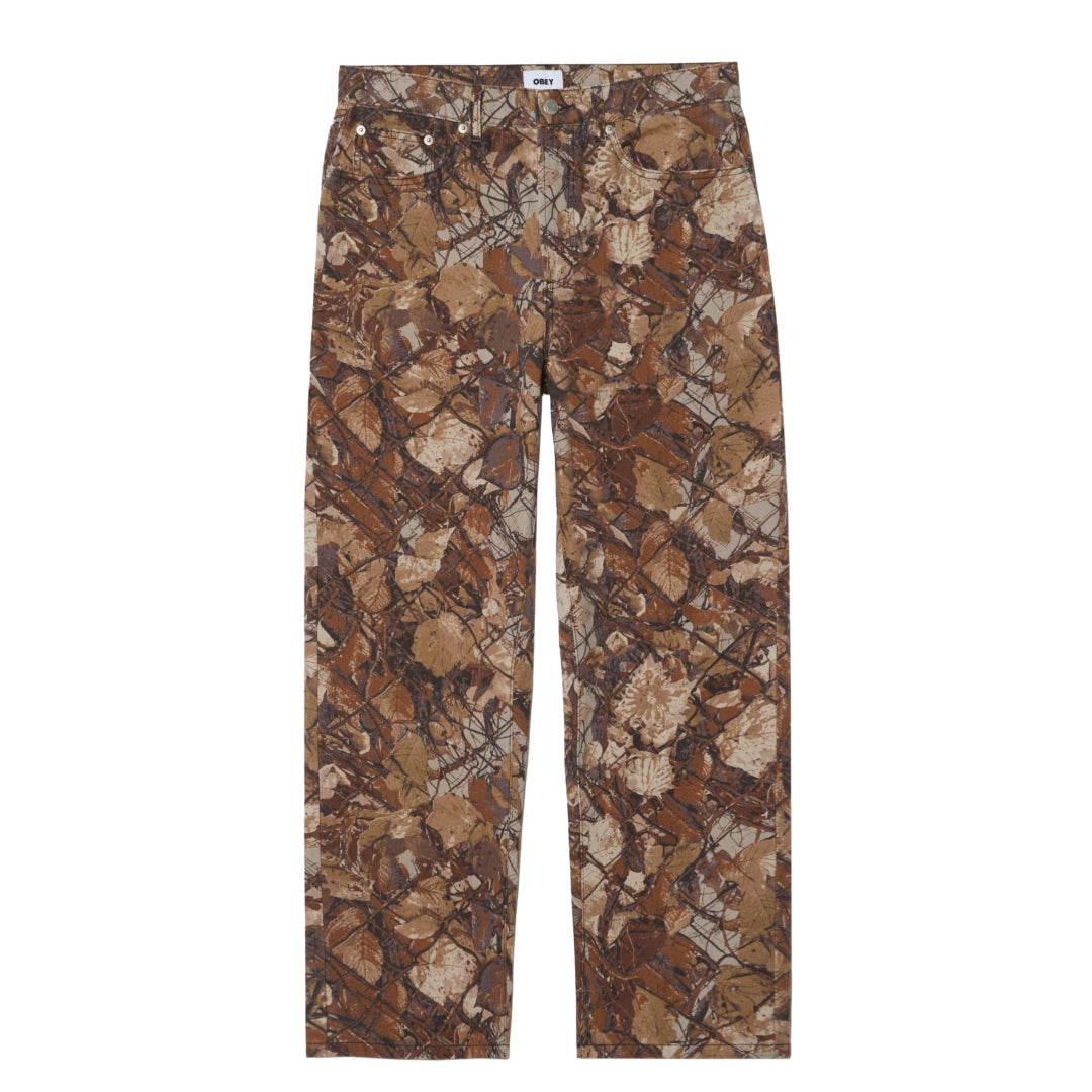 右後ろポケットにはレザー製の「OBEY」ラベルが付いており、シルエットはバギーフィットでテーパードレッグになっています。